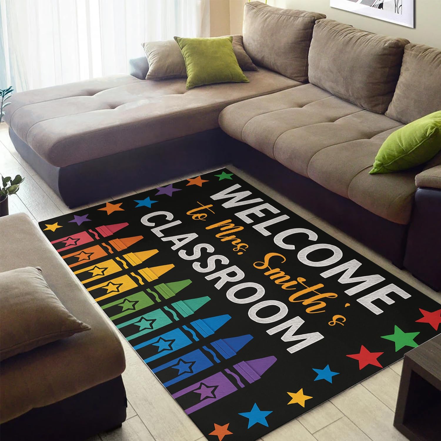 🌟Welcome Your Students in Style with a Personalized Classroom Rug: Start the school year off right with a cozy, colorful, and completely personalized classroom rug that brings comfort, creativity, and character to your teaching space!Designed for Teachers, Loved by Students: Our personalized classroom rugs are crafted with educators in mind. Add your name to create a space that feels truly yours. It’s more than a rug – it’s a statement piece that celebrates your classroom community.🌈 Vibrant Designs to Match Any Theme: Choose from a variety of bright, engaging patterns – from composition notebook, crayons to whimsical rainbows, nature scenes, and learning-focused themes. Each rug is printed with vivid, fade-resistant colors that spark imagination and foster a love for learning.4 Sizes Available: X-Small (2' x 3'), Small (3' x 5'), Medium (4' x 6'), and Large (5' x 8'). Great for preschools, elementary classrooms, homeschool settings, and reading nooks.Create a classroom your students will love to walk into every day. A personalized rug adds a professional, polished touch and helps set the tone for a positive, inclusive learning environment.Ready to make it yours? Click ‘Customize Now’ to personalize your rug, pick the perfect size, and explore more unique classroom designs to match your style!